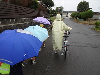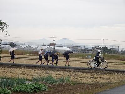 少々雨が降っていますが、みんな元気に登校しているようです(7時50分)。
