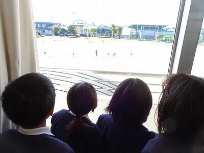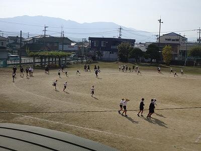 左の写真は、低学年が運動場を走っているのに気が付いて、ちょっと応援している4年生。お隣の写真は休み時間にみんなで日向ぼっこの6年生。朝夕は寒いですが、昼間は過ごしやすいですね。