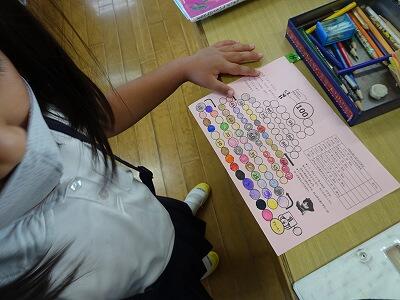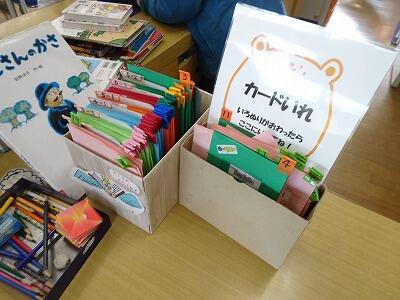 1年生が図書室に行っているときに、ちょっとお邪魔をしました。たくさん本を読んでいる子たちも多そうです。本を読んだらみんなカードに色を塗って、読んだ冊数を記録しています。話によると200冊読むと、「1冊多く借りられる栞をもらえるとか」・・・1年生も本を借りた後に、楽しそうに記録をつけていました。
