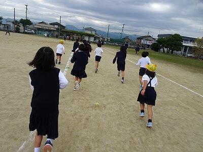 1年生は、体育の時間に運動場を何周もして走っていました。「がんばれー!」の声がたくさん響いていました。業間のランニングタイムは今日は、1・3・5年生が走っていました。自分のペースをみつけてしっかり走れるようになるといいですね。本番はおよそ2週間後です。来週からコースの試走も始まります。