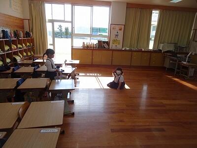 今日は暖かな日中で、1年生の教室では太陽の光が差し込んだところに座り込んで、あったかそうにしあわせそうにしている1年生がいましたので、パシャっと一枚。