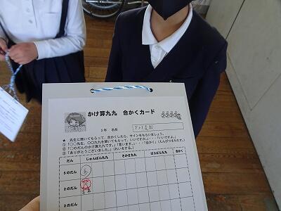 そして、今日の昼休みは、校舎のあちらこちらにカードを片手に持った2年生が出現して、先生たちを捕まえたり、上級生を捕まえたりして、かけ算の九九を聞いてもらっていました。毎年この時期、2年生はこうやって頑張っております。去年の2年生(今の3年生)もこの時期うろうろしていましたので、1年経つのもはやいな~と感じるところでもありました。かけ算九九、ぜひお家でも聞いてあげてくださいね。