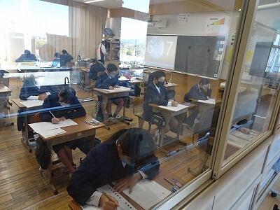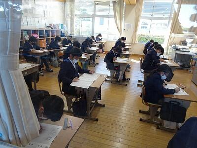 写真は5年生と6年生の様子です。これまでの学習の内容をもとに、いろいろ考えを広げて解く問題もあったようです。しっかり力が出せていますように。
