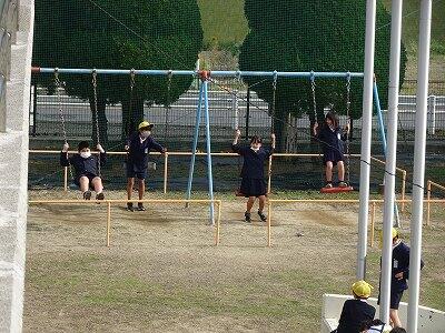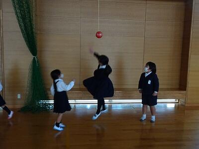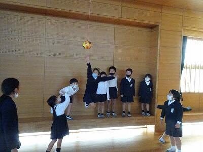 今週も朝夕は寒いですが、昼間は結構暖かい日が続きます。昼休みには運動場にたくさんの子供たちが元気よく遊んでいました。業間は「ランニングとジャンピングボール」タイムです。今日は体育館に行くと1年生が吊り下げられたボールに、何回も何回もジャンプして、触ろうと頑張っていました。