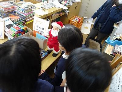 もう一枚は、図書室の飾りに登場した「サンタクロース」に大はしゃぎの4年生(#^^#)。