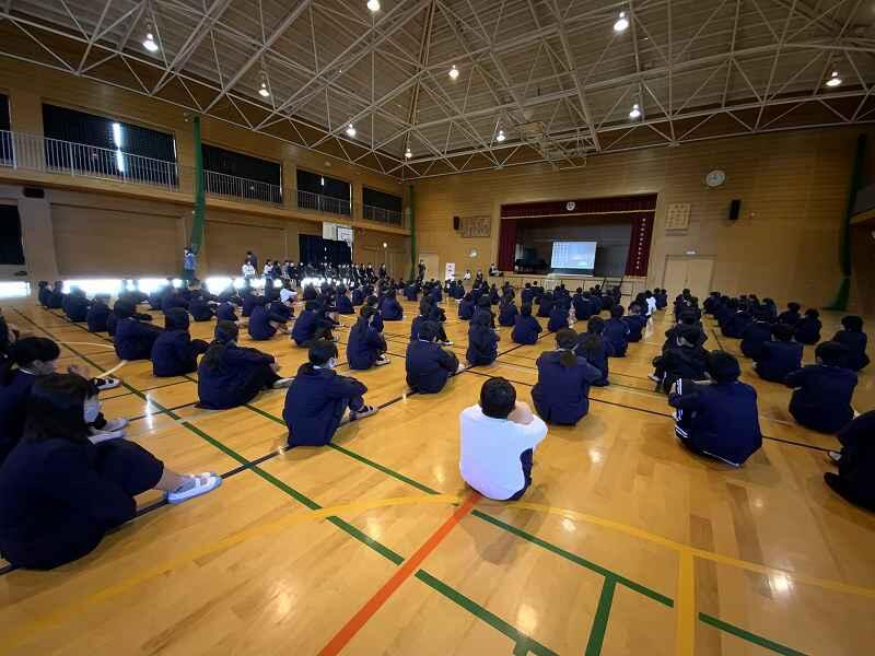 コロナが落ち着いているので、2年ぶり!ぐらいで体育館に全員集合しての終業式を行いました。