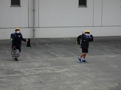今日は、終業式の日、全てが終わって下校する2年生です。「ぐっば~い!」というと「しーゆー!(See You!)」と英語で返してくれましたよ。
