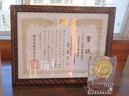 賞状を受け取る校長先生。賞状と盾をいただきました。これを励みにまたホームページの更新もがんばっていきたいと思います。これからもよろしくお願いいたします。
