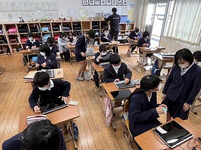 4年生の教室では、1年間お世話になったタブレットの中身の整理したり、汚れたところを拭き上げたりしました。4年生は5年生になると高学年用のタブレットを使うことになり、今まで使っていたタブレットは低学年に引き継ぎます。次の人も気持ちよく使えるようにできたと思います。