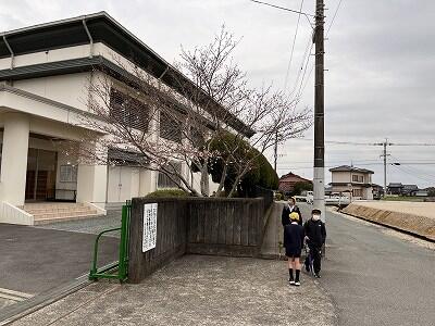正門前の桜の花が咲き始めています。明日の卒業式はさらにたくさん花開いてくれることでしょう。