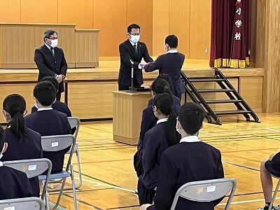 1組・2組それぞれ代表が校長先生より修了証を受け取りました。