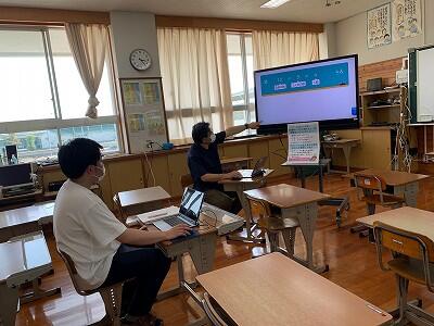 今日も1年生の教室前を通ると、いろいろ呼び止められました~。自分の顔と名前を書いた掲示をじーっと見つめている子がいたので、「何してるの?」と聞くと、「これぼくのだよー」と質問は聞き流して、自分の絵を教えてくれました。そして放課後は4日目のICT研修行いました。授業で使うスライドづくりを勉強しました。