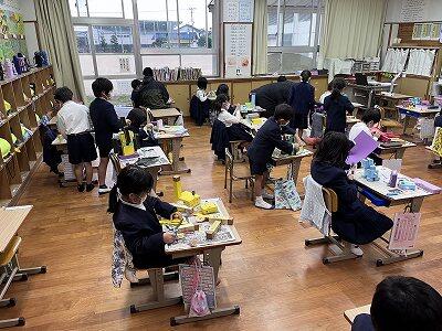 今朝はかなり暗くどんよりした感じの朝でしたが、なんとかお昼過ぎには晴れ間も見え、昼休みはぼちぼち子供たちも外に出て、遊んでいました。今週末は子ども工作展・創作展が控えていますから、各学級その作品の仕上げに忙しそうです。写真は1年生、いろんな箱を使って作っていますね。