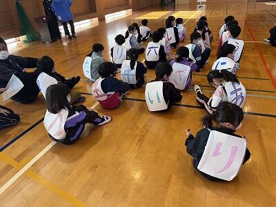 カメさんの甲羅のように、6年生へのメッセージを背負ったかわいらしい1年生と人文字でメッセージを伝えている4年生。他の学年からもたくさんのメッセージをもらって6年生も嬉しかったでしょうね。 6年生の学校生活もあと12日です!