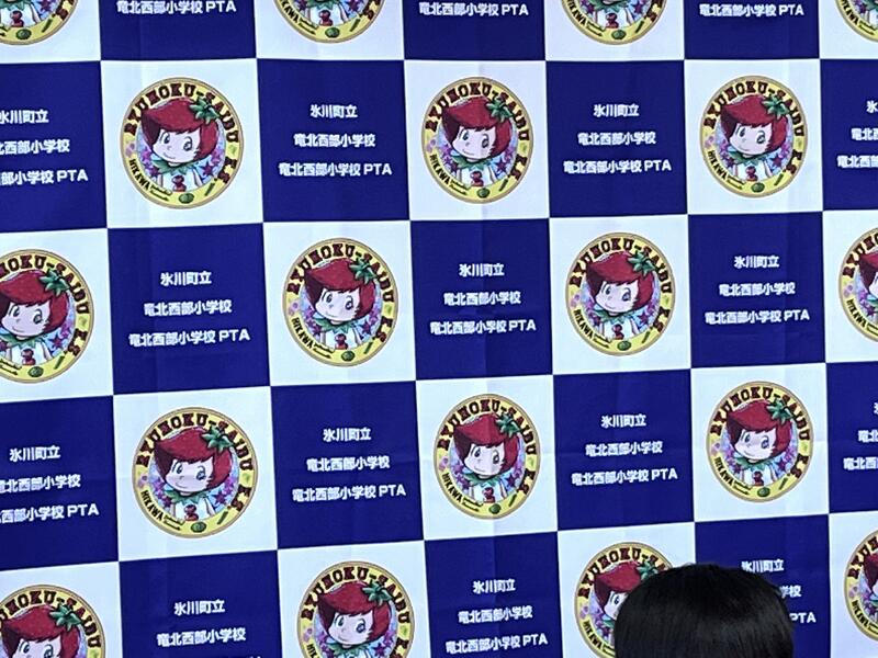 ・・・と、写真にある通り、竜北西部小のほぼ公認キャラ「いちごちゃん」をデザインしたバックボード(幕、記者会見とかでも見るやつデス)も初お目見えしました~。みなさん、いかがでしょう?