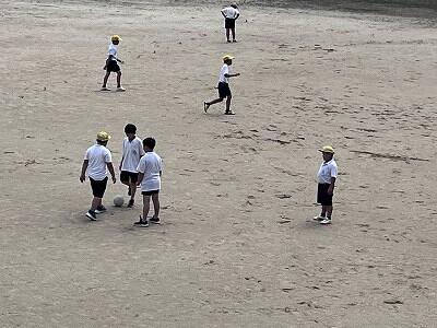 今日は外に出てもよいとのことだったので、少ないながら早速運動場で遊ぶ子どもたちの姿も見られました。でもまだまだ室内で過ごす子どもたちが多いようです。はやくすずしくなあれ!
