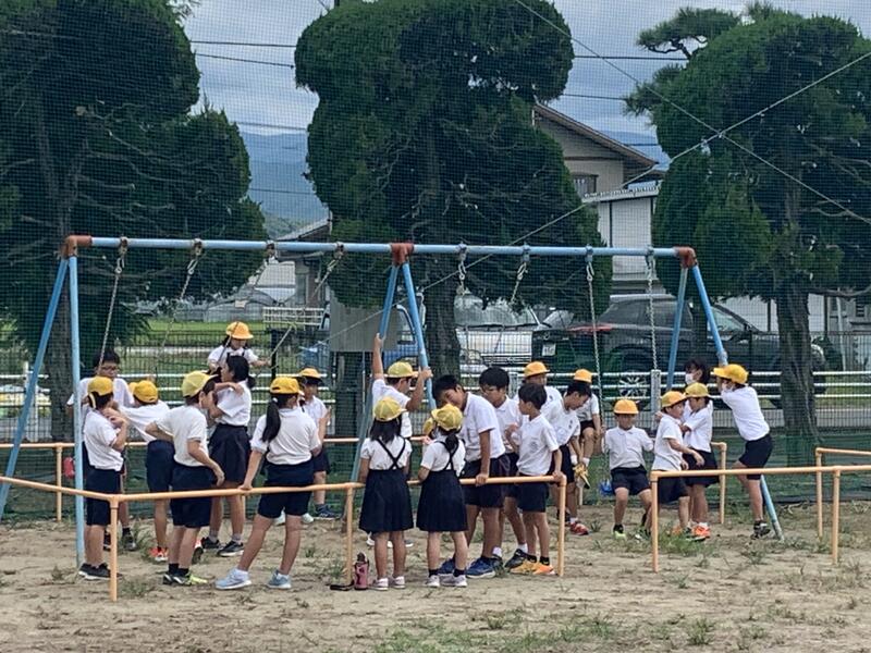 1年生から6年生までみんなが集まって、自然と話も弾みながら、みんなで同じことを取り組んでいる様子がとてもよかったです。来週からの取組もまた楽しみになりました。