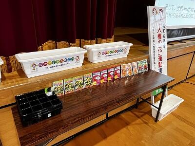 町長様のお話を聞き、たくさんの花の種と土、プランターを受け取りました。また人権について考えるお話も聞きました。最後はみんなで記念撮影も行い、これからみんなでしっかり取組むことを確認しました。また具体的な活動は随時お伝えしていくことになると思います。