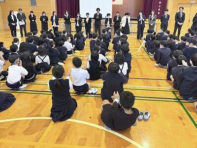 本日(4月8日)就任式・始業式が行われました。数名の欠席もありましたが、みんな元気よく登校できました。就任式では6名の先生方を迎えて、新しいスタートを切りました。引き続き行われた始業式では、お話を聞いた後、担任の先生発表で盛り上がりました。
