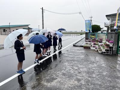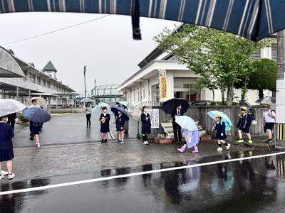本日は「あいさつ運動一斉行動の日」でした。各ご家庭や地域での子ども田たちの様子はいかがでしたでしょうか。今日は雨の中でとなりましたが、元気なあいさつが正門前には響いておりました。