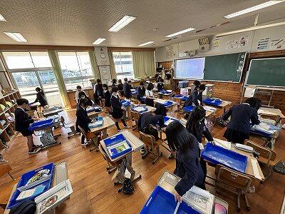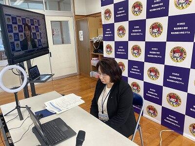 終業式、感染予防対策のためオンラインで実施しました。各教室に分かれていた子どもたちですが、しっかり反応したり、拍手をしたりして参加することができていました。