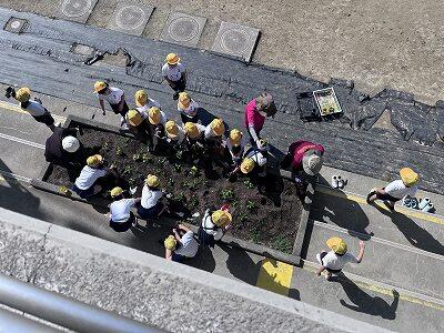 連休明けの学校もスタートしました。今日は暑くもなく寒くもなく、過ごしやすい日中でした。運動場からにぎやかな声が聞こえるので、のぞいて見ると1年生が花植えをしていました。これから花が大きく育つのがまた楽しみですね。
