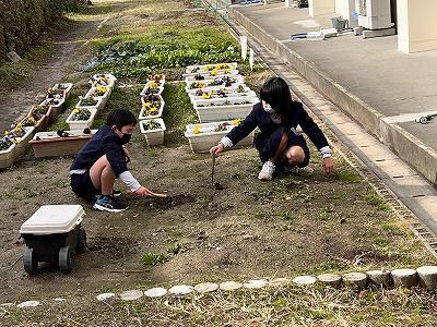 今日の写真は、学級園の草取りにがんばる3年生と靴箱掃除の4・5年生。毎日の掃除もそれぞれの場所でがんばっています。いつも気持ちよく過ごせるきれいな学校でありますように。