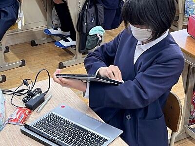 4年生の教室では、1年間お世話になったタブレットの中身の整理したり、汚れたところを拭き上げたりしました。4年生は5年生になると高学年用のタブレットを使うことになり、今まで使っていたタブレットは低学年に引き継ぎます。次の人も気持ちよく使えるようにできたと思います。