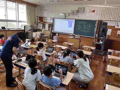 今日は、いくつかの学年で2学期開始前のオンライン学活が開かれていました。教室に来て参加している子供たちも何人かいて、久しぶりににぎやかな声が教室に響いていました。こうやってみんなの姿を事前に見ることができるのもオンラインならではです。
