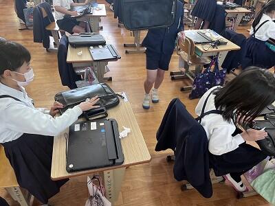 今年度最後の1週間です。新しい学年に向けていろいろ片付けも忙しいです。写真はお世話になったタブレットを点検したあと、きれいにしている2年生。できることはきちんとやって、新しい学年をむかえたいですね。