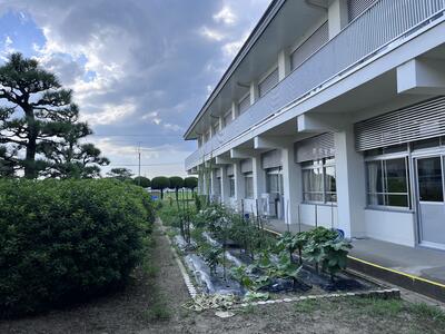 今日は夕方の学校内をちょっと撮影しました。野菜たちは夏の暑さにも負けず元気に育ってるようです。みんなの靴箱は傘やら、うわぐつやらがチラホラ忘れ物があって、だいじょうぶかな~と思いました。