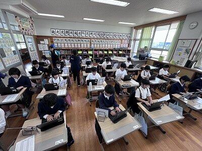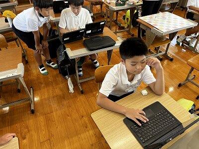 本日10月26日は第3回目(3年生は2回目)のタイピング検定を実施しました。緊張感のある中、それぞれの学級で、みんなが真剣に検定を受けることができました。結果は、ミスタイプ等をチェックした上で、一人一人の級を出します。さあ、9月より良い結果は出るでしょうか?また報告をしたいと思います。