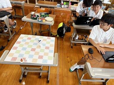 最初は一人ひとり自分の机の上で、少しずつプログラムを作っては、試し、作っては試し、していました。難しいところは相談しながら、進めていました。なかなか表情は真剣です。・・・・しばらくすると少しやり方もわかってきて、じゃんじゃん!動かすプログラムを作り出していたようでした。最後は自分のプログラムが実際動くのは楽しい!という表情にみんななってきたところで、今回は時間となりました。次回はこの続きで進めていきます。