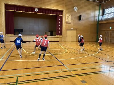 持久走大会終了後、5年生では「ハンドボール」をしています