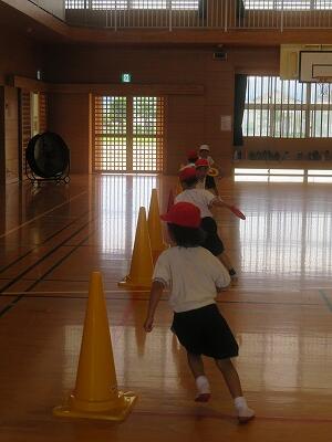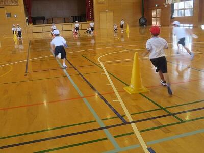 1・2ねん生いっしょに たいいくをしました「とおりおに」「手つなぎおに」「こおりおに」と、おもしろいおにごっこが いっぱいで