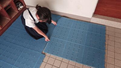 写真は、机といすの脚(あし)のうらを