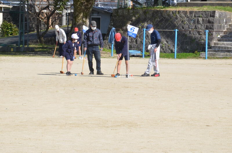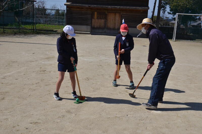 参加した6年生は、協議会の皆さんにご指導をいただきながら、春らしい青空の下、グランドゴルフの楽しさを存分に味わっていました。