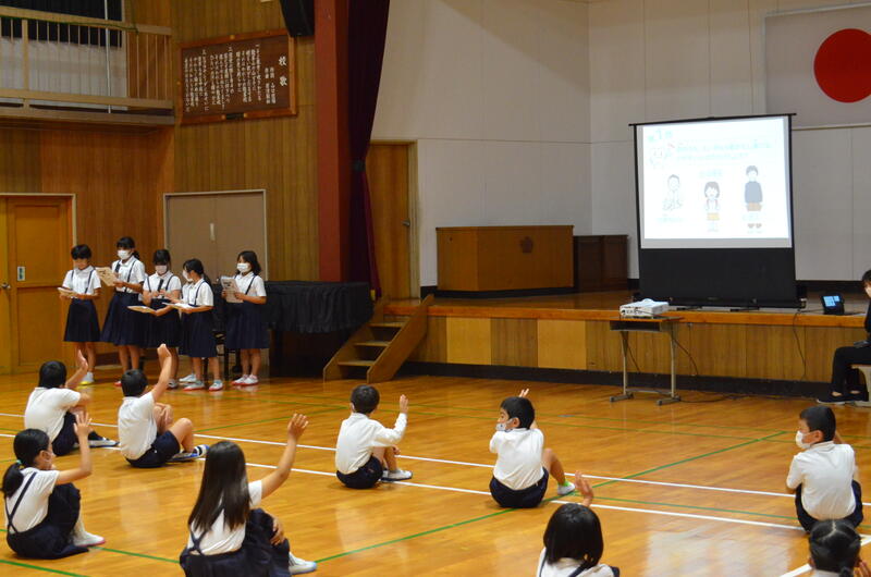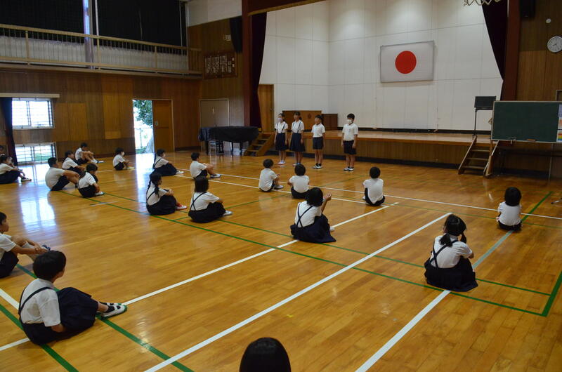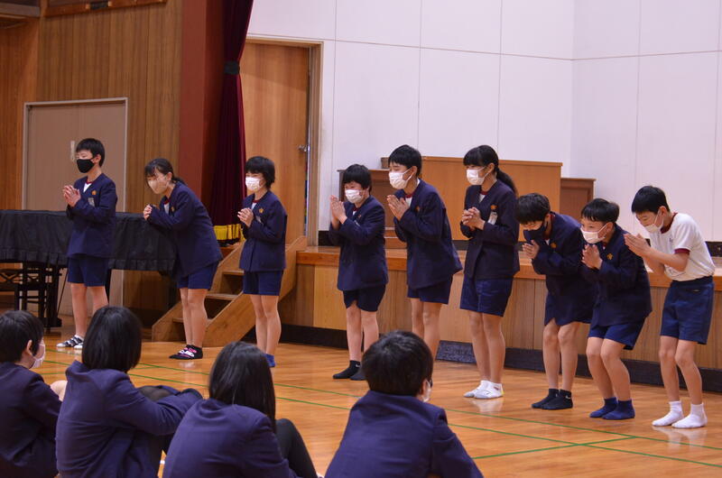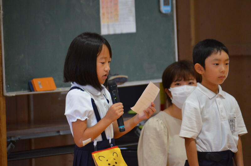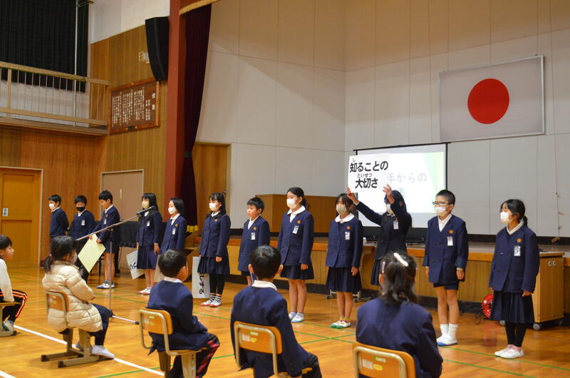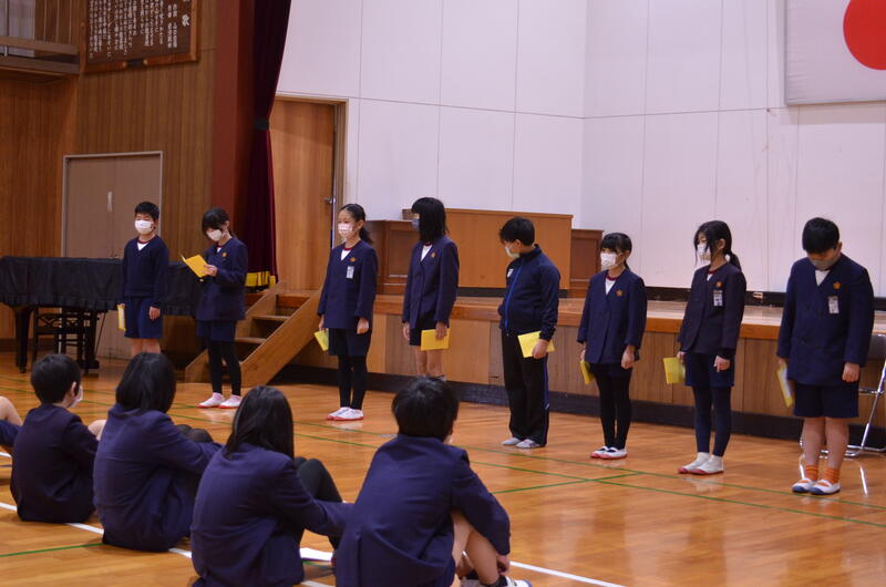 お別れ会では、それぞれの学年がこの1年でできるようになったことや6年生への感謝の言葉を伝えていました。