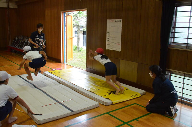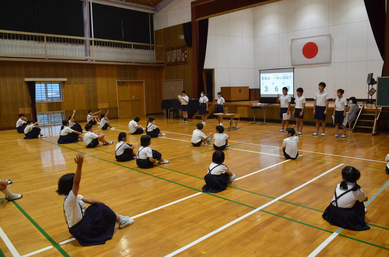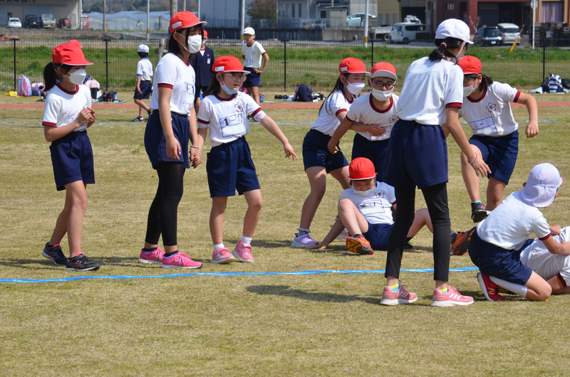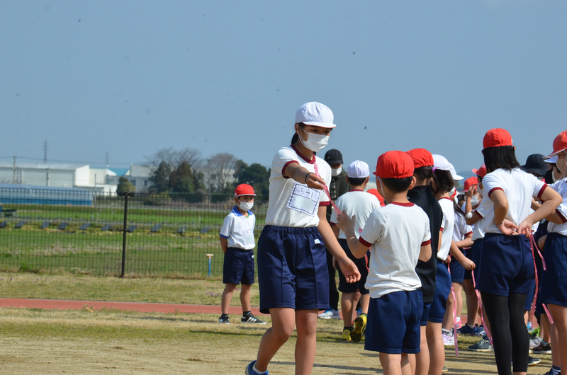 6年生が縦割り班のチームリーダーになって、それぞれの種目を回って計測したり、記録することができました。特に、計測会場を移動したり、挨拶をしたりするときに6年生がきちんと号令をかけているところが素敵でした。