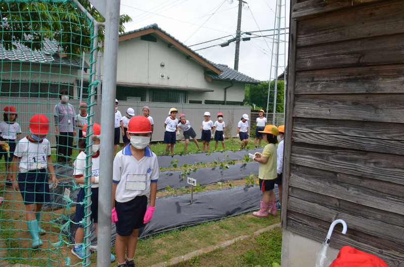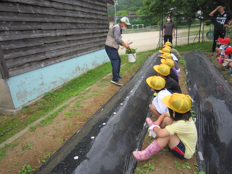5月30日 1年生・2年生・3年生がサツマイモの苗を植えました。