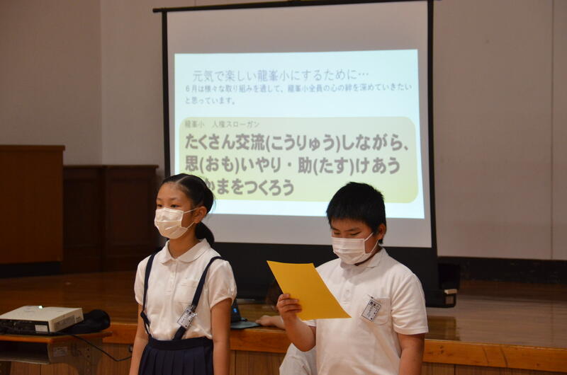 前日の児童会委員会活動では、龍峯小学校の絆づくり、なかまづくりを真剣に考え、龍峯小人権スローガンを決める話し合いしていました。