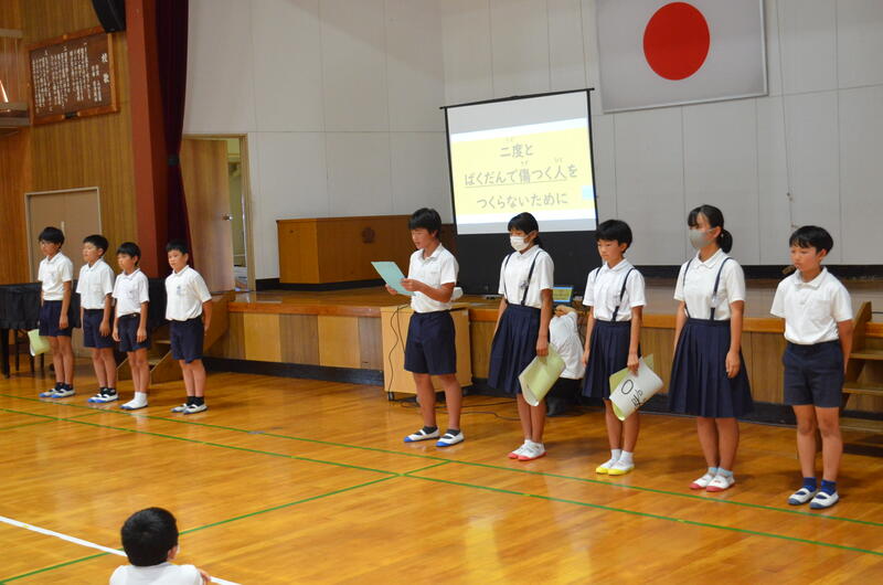 とても分かりやすくお話しをしていただきましたので、子供たちは自分と家族の体と心を守るため、薬物に対して「薬物乱用は ぜったい ダメ」「NO 絶対 ダメ」と言えるようになっていくと思います。