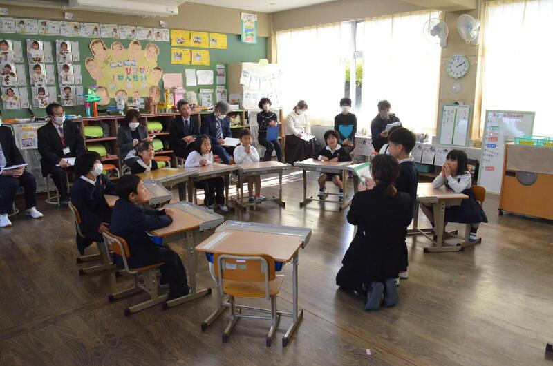 2月1日に、読み聞かせをしていただく民児協の皆さんを子供たちに紹介しました。
