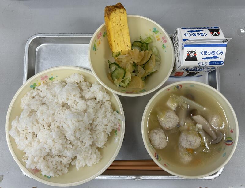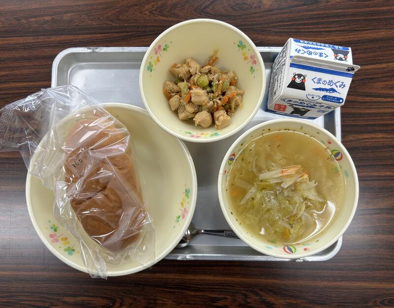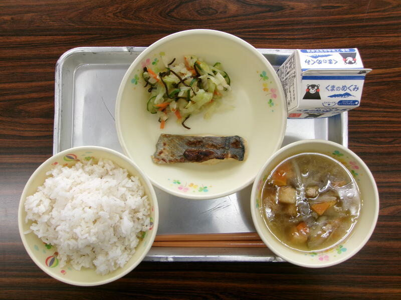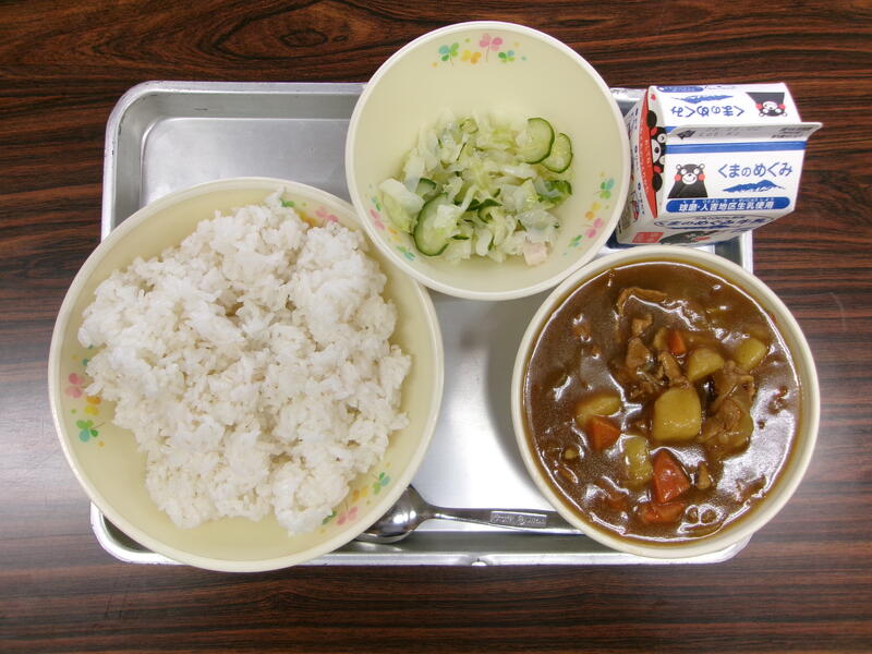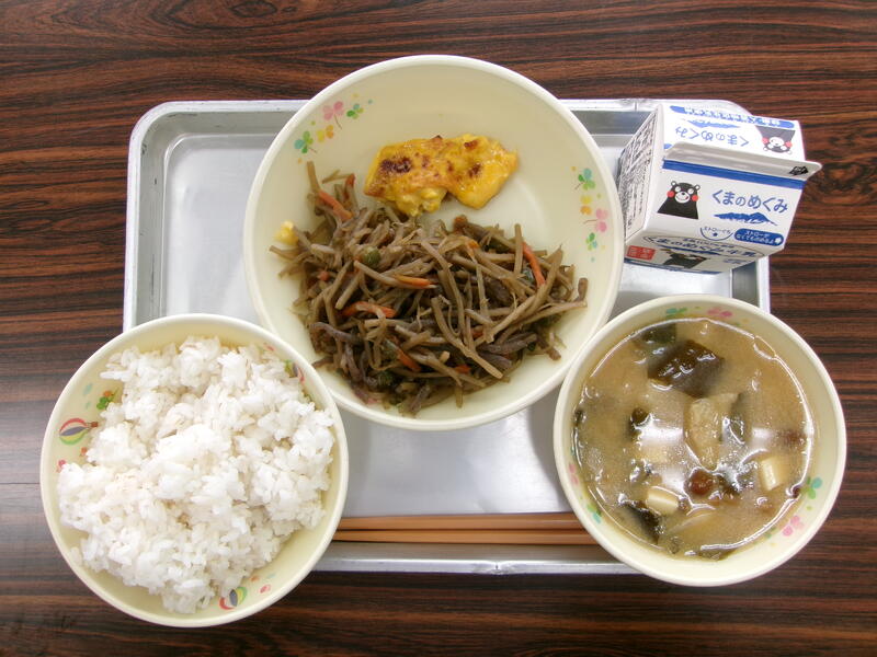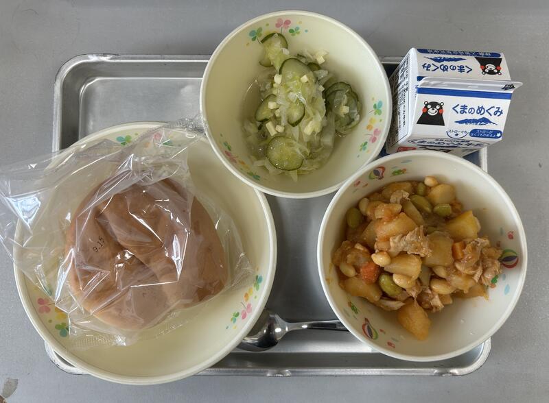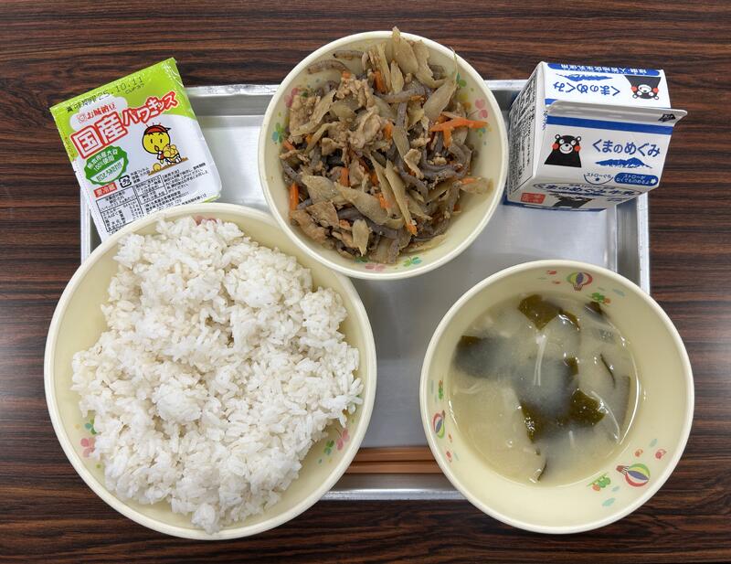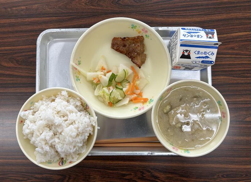 今日は、地場産物を活用した「ふるさとくまさんデー」の給食になっています。