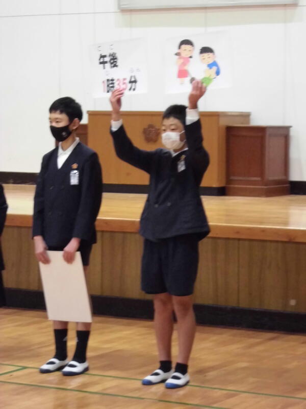 1月20日(木)の始業前の時間に、全校集会を行いました。