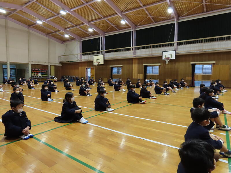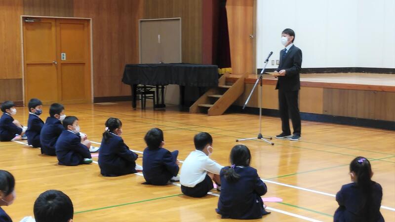 11月25日(木)の始業前の時間に全校集会を行いました。今回は、森本先生が、52年目を迎えようとしている「九州一周マラソン」の歴史の深さやその効果の大きさ、先輩の頑張りなどについて、自作のスライド資料を示しながら話されました。そして、最後には、「トルコ行進曲」の素晴らしいピアノ演奏も披露され、子供たちは大喜びでした。