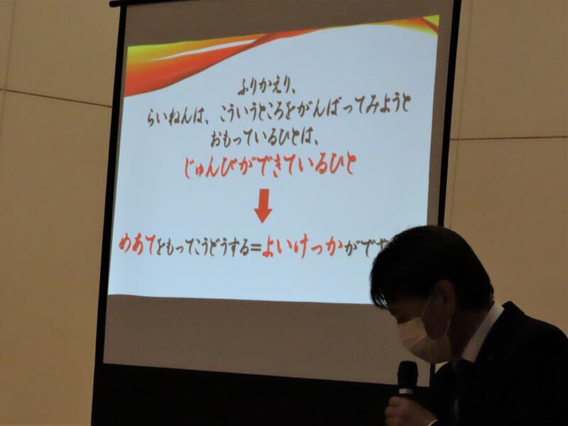 「毎日の生活の中では、やるかやらないか、どちらかを選ぶ場面というのがたくさんあります。そんなときに、やる方を選んでほしい。ただ見ているだけではなく、行動することで、違ったものが見えてきて、違った生活が始まります。それが皆さんの可能性を広げていくことに繋がるのです。どうしようか迷ったら『やりましょう』『挑戦しましょう』先生たちは、挑戦した君たちを応援します。」