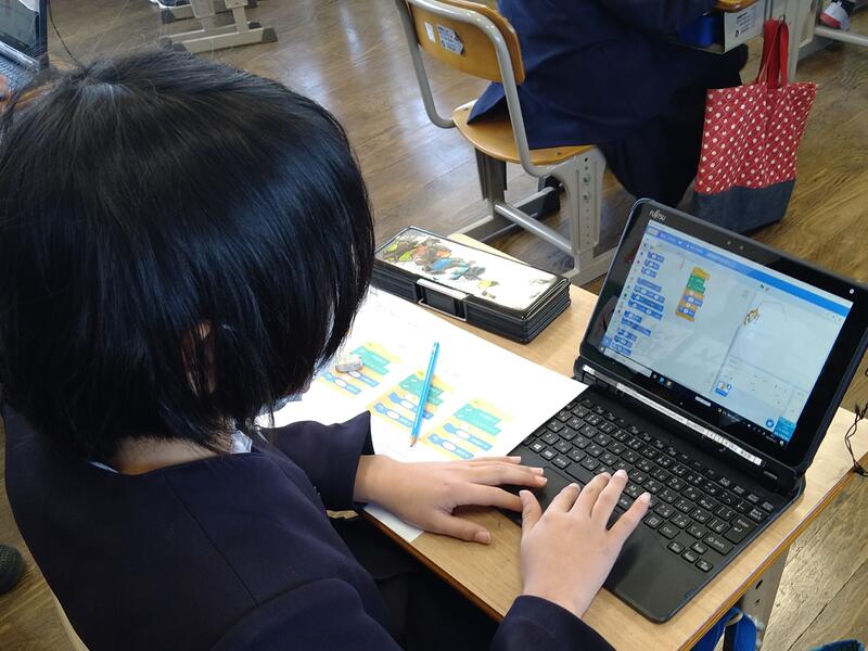 スクラッチというプログラミングソフトを活用した算数科の授業でした。