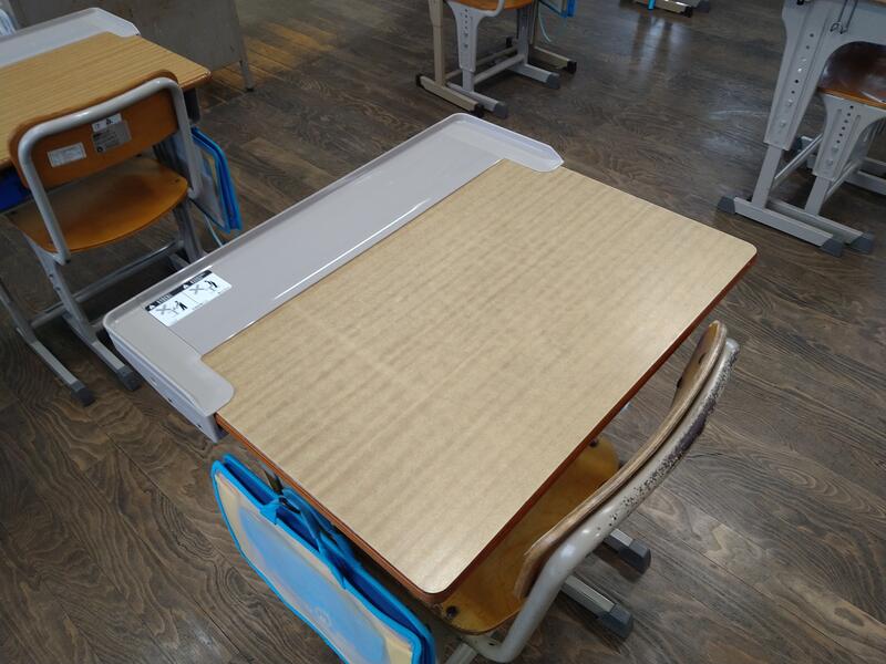 先日、岡町谷川にあります「株式会社 丸徳」様からいただいた寄付金で、机に取り付ける「拡張器」を購入し、全児童の机に取り付けました。
