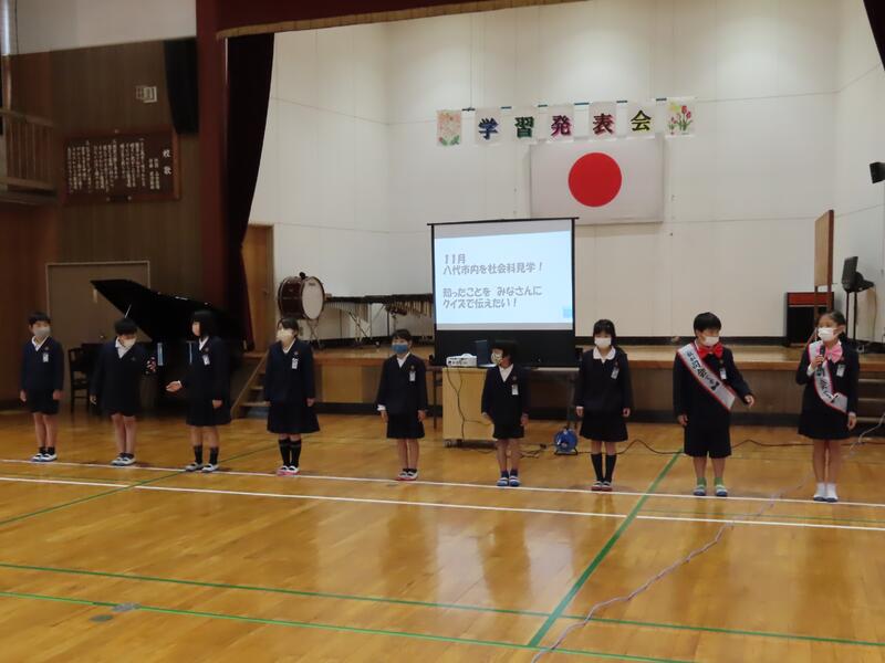 社会科見学旅行や音楽や書写、総合的な学習の時間に学んだことを発表しました。